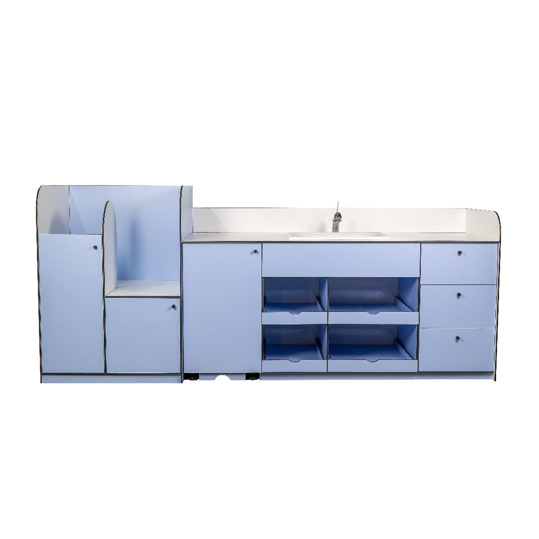 À partir de 8460.00 € HTLe meuble de change en L offre de nombreux rangements . Il est fonctionnel et offre une hygiène irréprochable.