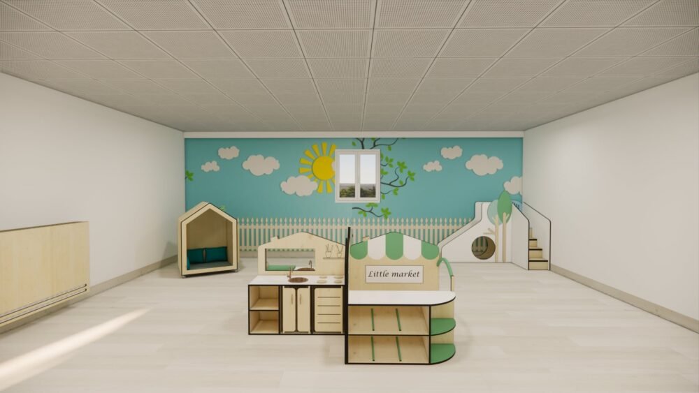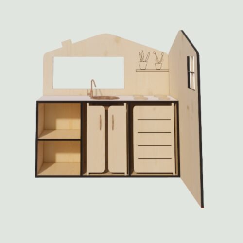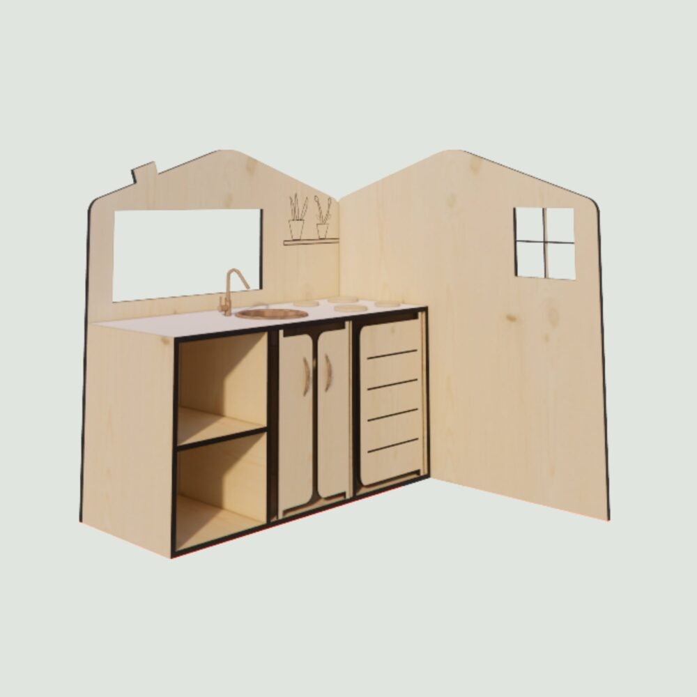 Cette cuisine d’angle développe l’imaginaire des tout-petits, et leurs motricité fine.