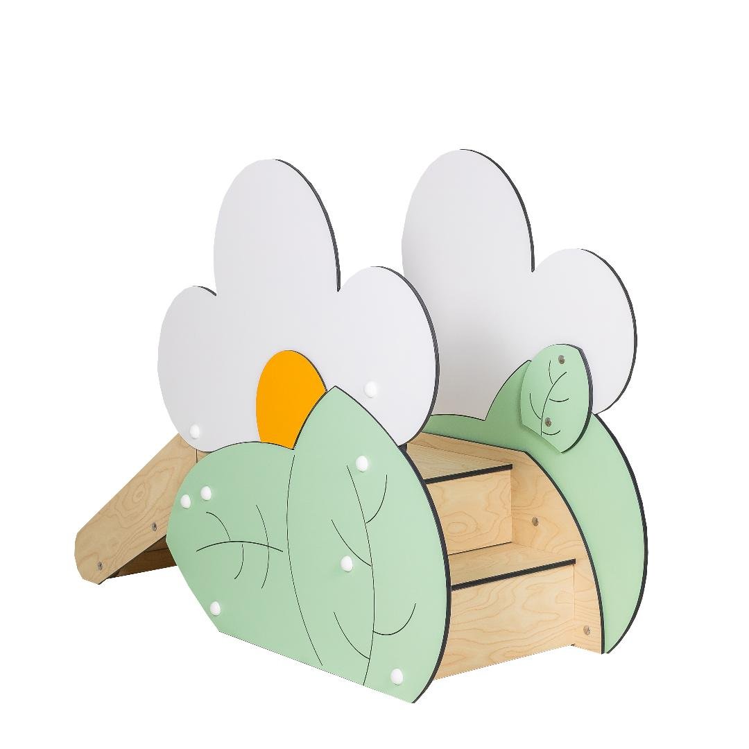 Avec sa silhouette de fleur, ce toboggan apporte une touche ludique et décorative à l’espace motricité.