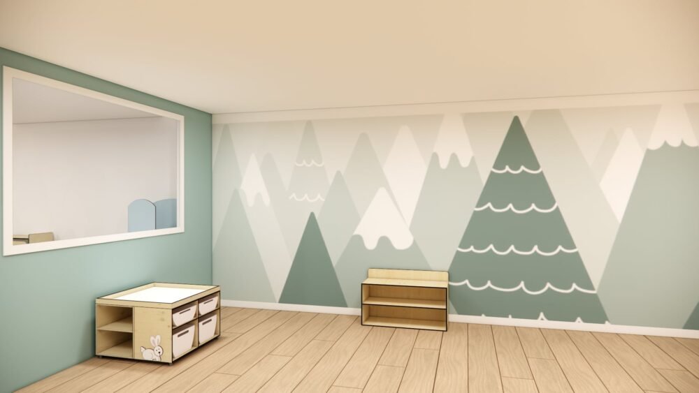 meuble bas large pour le rangement ou la prestation des jouets dans les pièces de vie en crèche