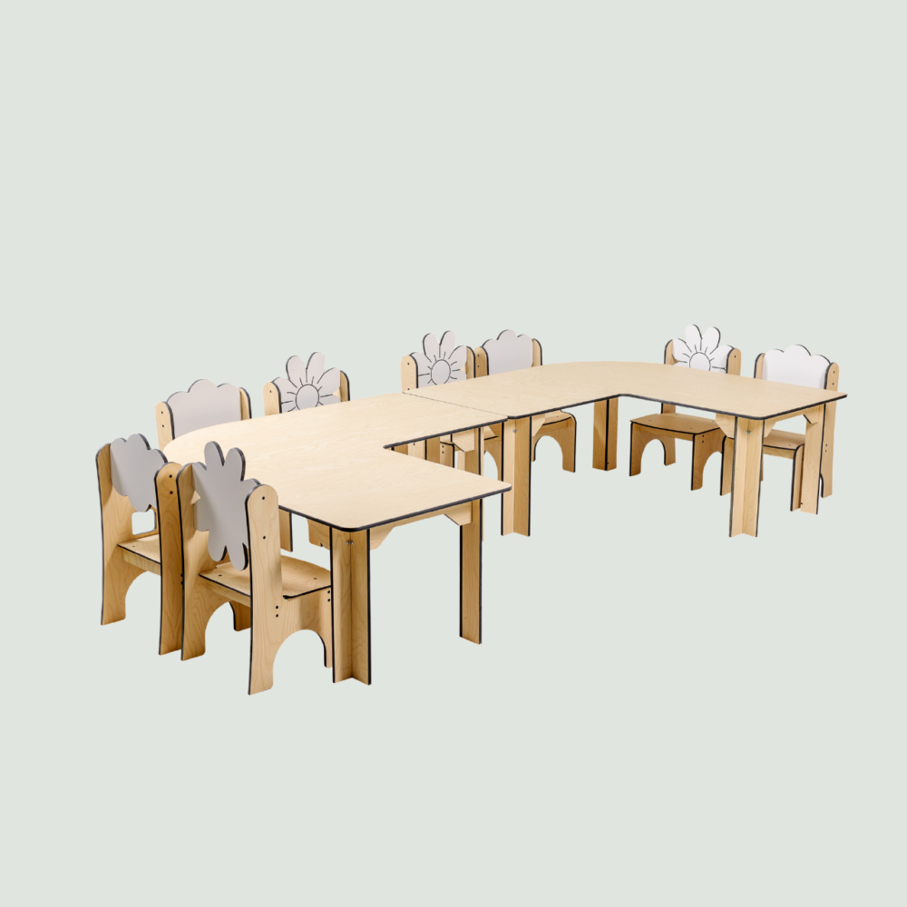 Pensée pour les professionnels de la petite enfance, notre table en L pour crèche allie praticité, sécurité et durabilité. Sa forme unique permet de créer des espaces de regroupement ergonomiques, tout en facilitant la surveillance et l’accompagnement des enfants lors des repas, des jeux ou des activités pédagogiques.
